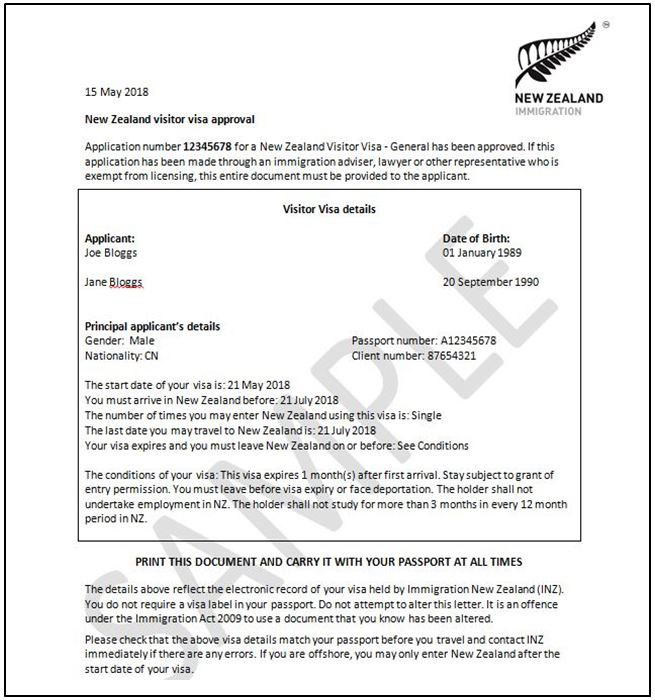 Hình ảnh bên dưới chính là eVisa của New Zealand.
